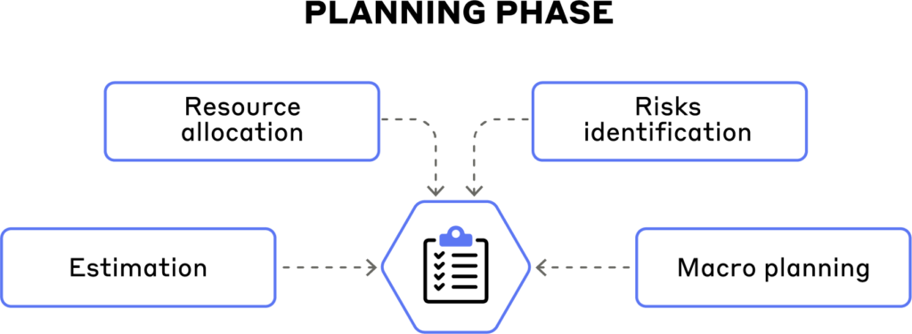 In the planning phase, AI enables smarter estimation, more accurate resource allocation, risk identification, and high-level delivery planning. These early activities are accelerated and refined through intelligent tooling that supports decision-making with data-driven insights.